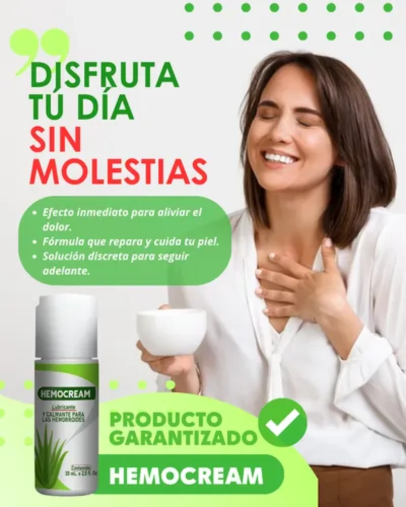 Hemocream es un gel calmante formulado con ingredientes naturales que ayudan a reducir la inflamación, aliviar el ardor, disminuir la picazón y mejorar la cicatrización del área afectada. Su acción hidratante y lubricante brinda confort inmediato y apoyo continuo para tu bienestar diario.