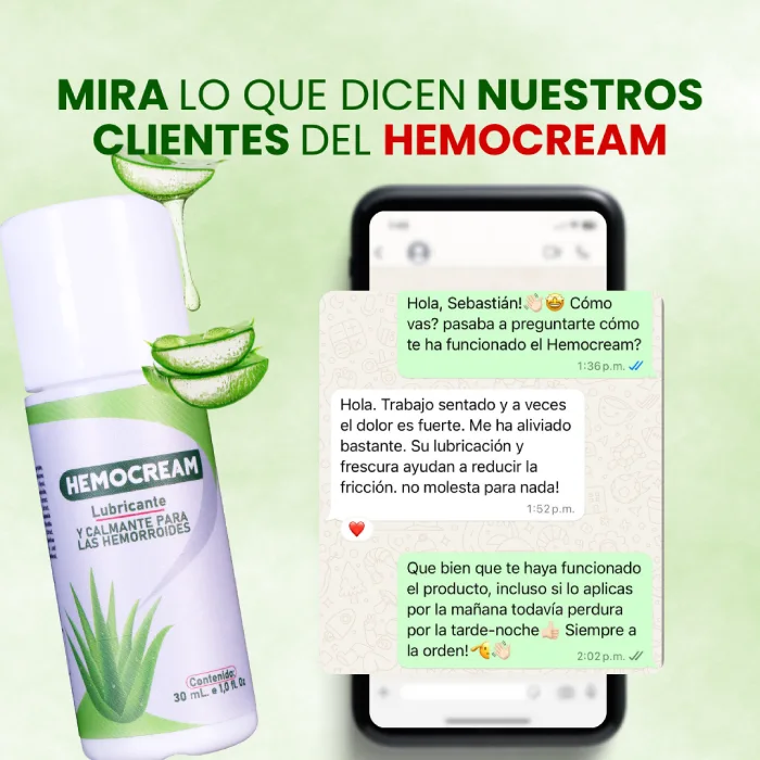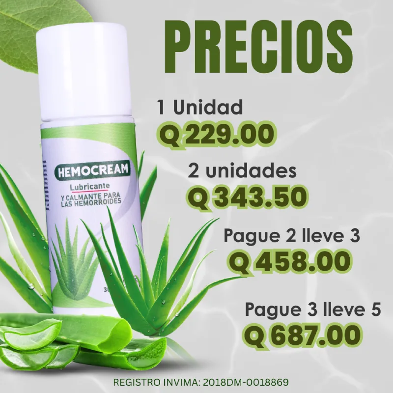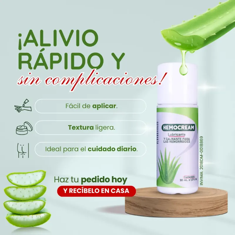 Hemocream es un gel calmante formulado con ingredientes naturales que ayudan a reducir la inflamación, aliviar el ardor, disminuir la picazón y mejorar la cicatrización del área afectada. Su acción hidratante y lubricante brinda confort inmediato y apoyo continuo para tu bienestar diario.